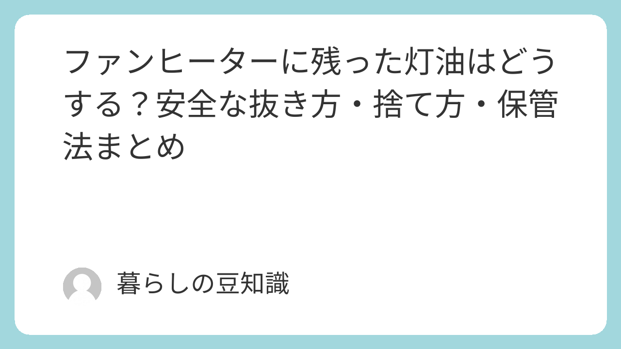 ファンヒーターに残った灯油はどうする?安全な抜き方・捨て方・保管法まとめ