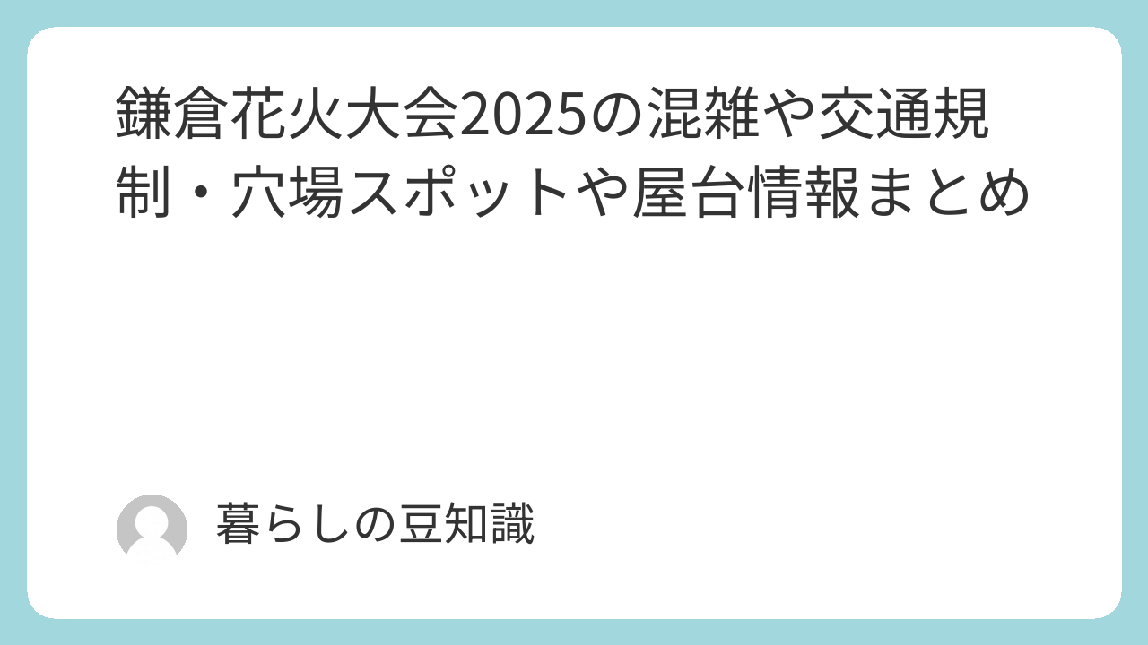 本記事では鎌倉花火大会2025の混雑や交通規制・屋台情報など、事前に知っておきたい情報を徹底解説。快適に花火を楽しむための対策や穴場スポット、持ち物チェックリストまで網羅しています。