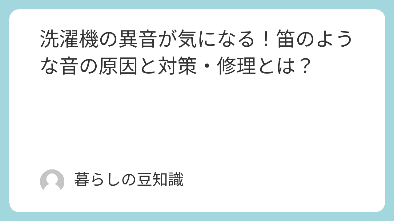 - 笛のような音:ホースやバルブの異常。給水や排水の際に圧力が不均一になると、高周波の音が発生することがある。